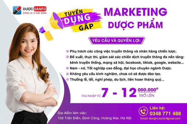 DƯỢC SANFO TUYỂN DỤNG Nhân Viên Marketing (Dược Phẩm)