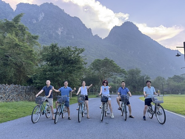 *Các anh chị đạp xe tham quan khu nghỉ dưỡng
