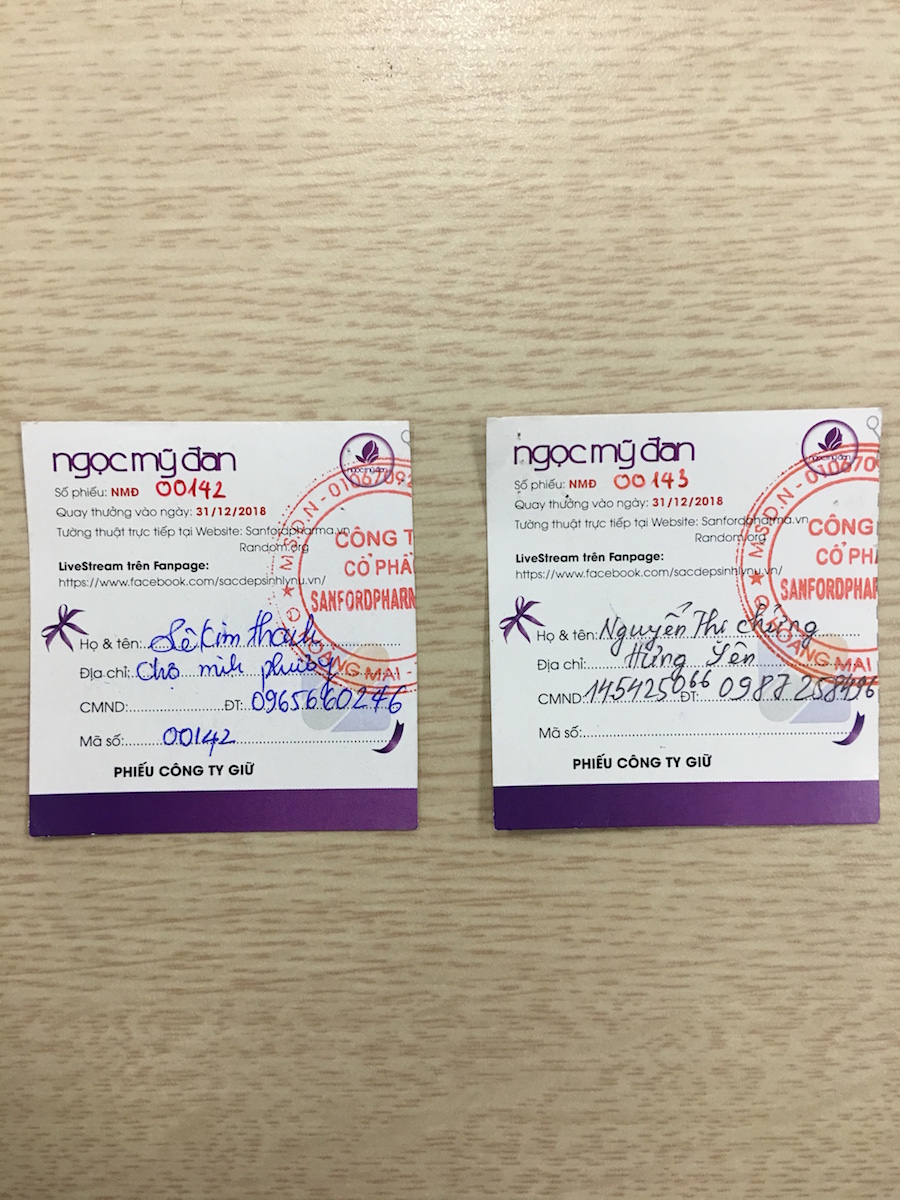 Ngày 03/01/2019, dưới sự chứng kiến của đại diện công ty Cổ Phần Sanfordpharma USA - SanfordPharma USA, đại diện khách hàng và cơ quan truyền thông, Nhãn hàng Ngọc Mỹ Đan đã tổ chức buổi quay số trúng thưởng trên toàn quốc để xác định những khách hàng may mắn trúng thưởng chương trình “ĐÁNH THỨC TUỔI XUÂN- VẠN QUÀ MAY MẮN” gồm: Giải đặc biệt - xe máy SH Mode 2018, Giải nhất- 01 iphone X sành điệu, giải nhì- nửa chỉ vàng SJC, và hàng chục giải thưởng khác với giá trị cao...