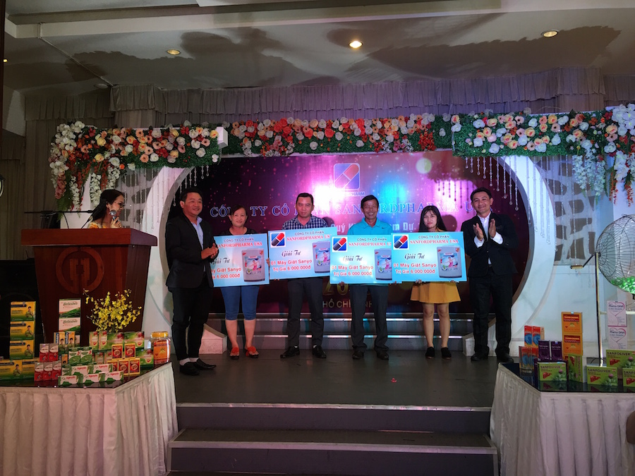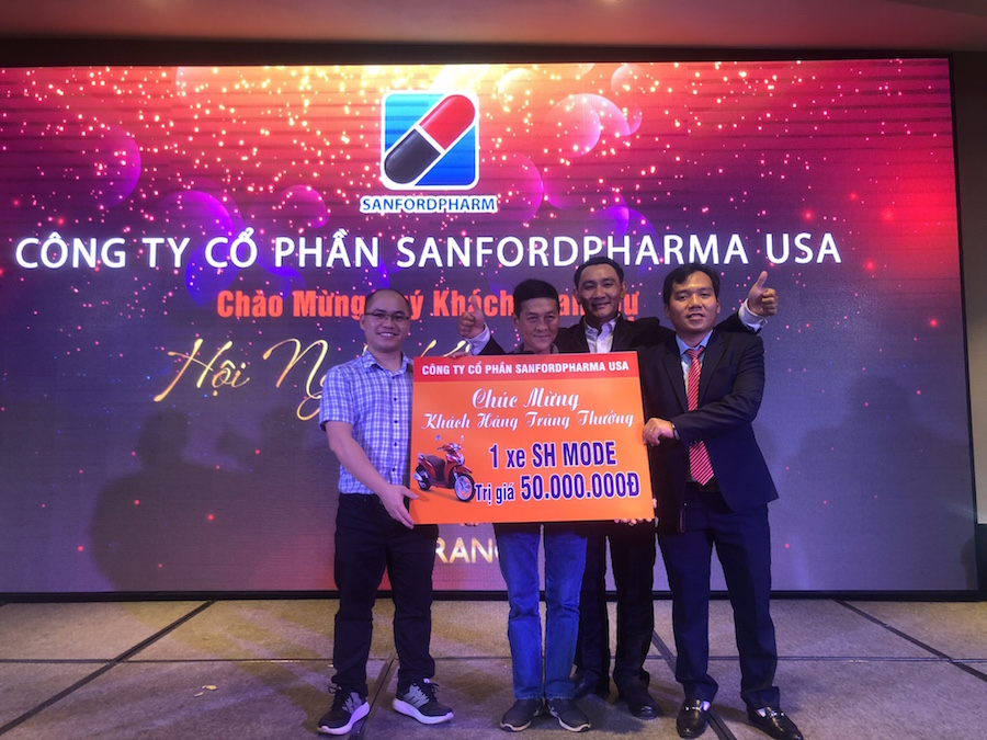 May mắn trong hàng trăm lá phiếu, công ty Công ty TNHH MTV Phương Trang Phát - TP Biên Hòa Đồng Nai là đơn vị trúng giải nhận được chiếc Xe máy honda SH mode trị giá 50 triệu. Thể hiện niện miềm vui mừng, đại diện công ty Phương Trang Phát cho biết “ là khách hàng lâu năm, chúng tôi luôn tin tưởng vào chất lượng những sản phẩm mà Dược Sanfo cung cấp. Chúng tôi rất vui khi Dược Sanfo thường xuyên có những hội nghị tri ân khách hàng như hiện tại. Qua mỗi cuộc hội nghị khách hàng tình cảm của khách hàng và công ty ngày càng bền chặt hà hiểu nhau hơn. Thật sự năm nay công ty Phương Trang Phát càng vui mừng lớn hơn khi là khách hàng may mắn trúng giải xe SH”. Không chỉ dừng lại ở đó, rất nhiều rất nhiều khách hàng trúng Xe máy honda Vission, Laptop Dell, Máy giặt, TIVI, hàng chục chỉ vàng SJC 9999, USD,...và hàng trăm quà loại quà tặng khác.