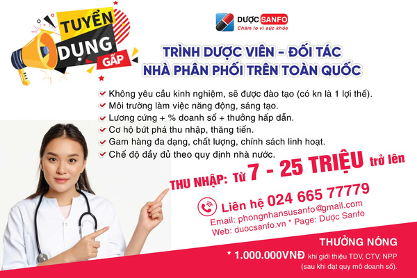 🎯[DƯỢC SANFO]-TUYỂN TRÌNH DƯỢC VIÊN, ĐỐI TÁC, NHÀ PHÂN PHỐI TRÊN TOÀN QUỐC